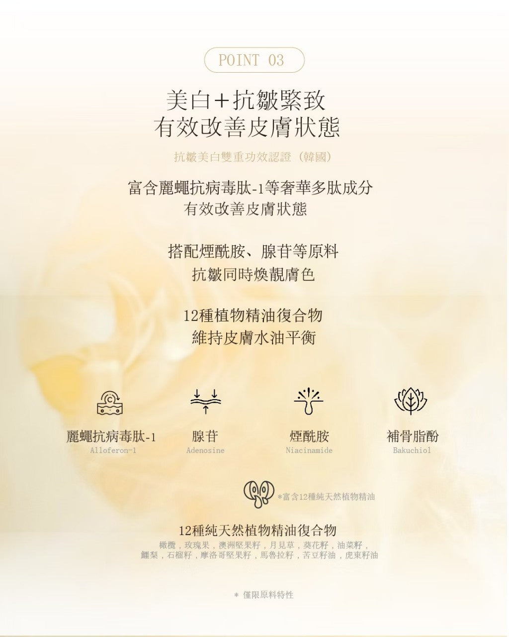 Highlight | A Breathable Essence Mist Triple-Layer Innovation: Water × Oil × Creamy Cloud This unique three-phase formula emulsifies into a lightweight essence with a gentle shake. It absorbs instantly, leaving skin fresh and non-sticky—yet locks in moisture for up to 12 hours of lasting hydration. |